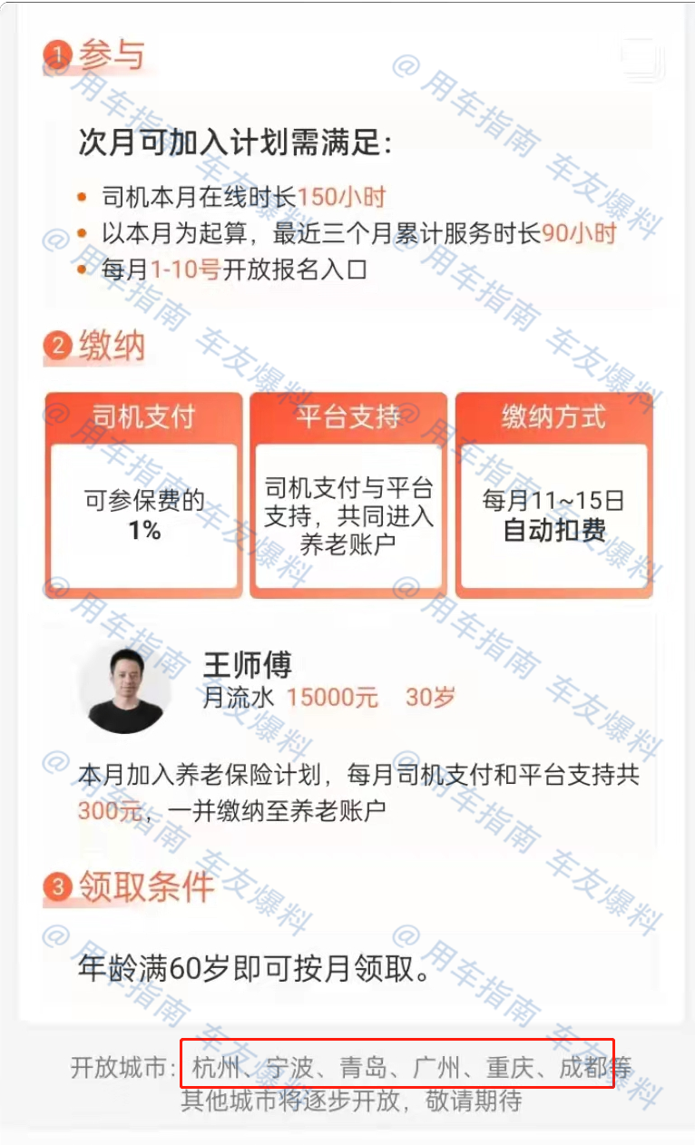 这六地的滴滴司机如果想为自己添一份养老保障,将可以得到平台的支持。养老费用由司机自己承担可参保费的1%,另一部分则有平台负责。