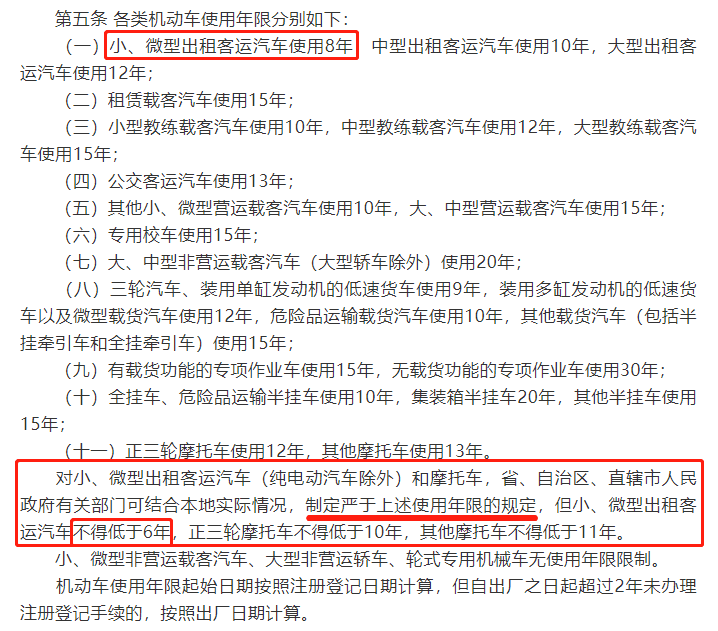 也就是说,出租车达到最少,最多8年就必须报废了!